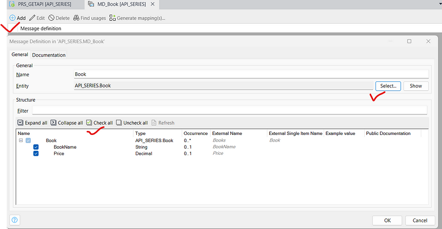 Go to GETAPI folder -> right click-> other->Click on Message Definition & give any name(MD_Book).