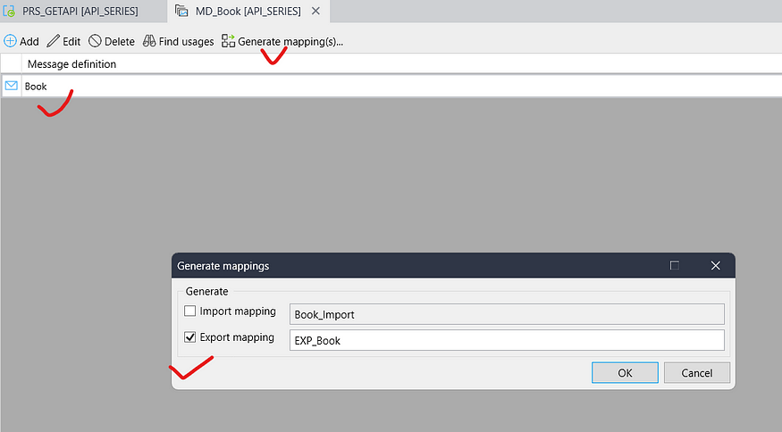 Go to again MD_Book(Message Definition) -> Select Book -> Click on Generate mapping to generate the export mapping and select only export mapping for this tutorial & click ok.