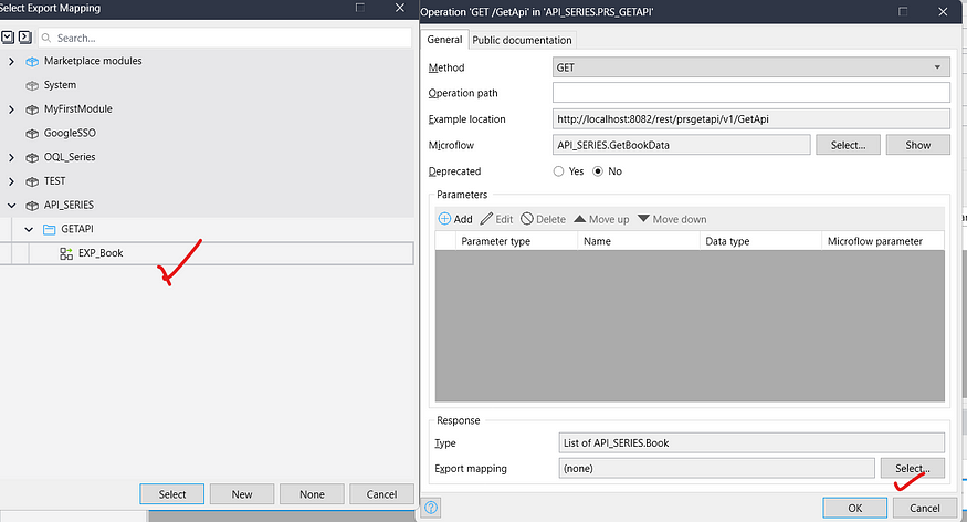 Go to again PRS_GETAPI -> Open your GET operation -> Select your Export mapping(EXP_Book) & Click OK.