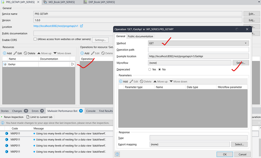 Now go to PRS_GETAPI-> Add operations for ‘GetApi’-> Select GET Method & in the microflow create a new microflow(GetBookData).