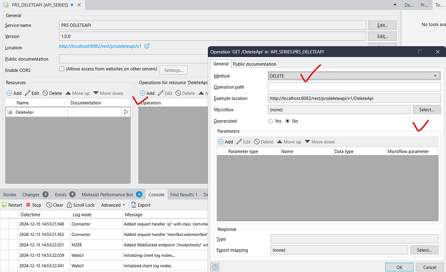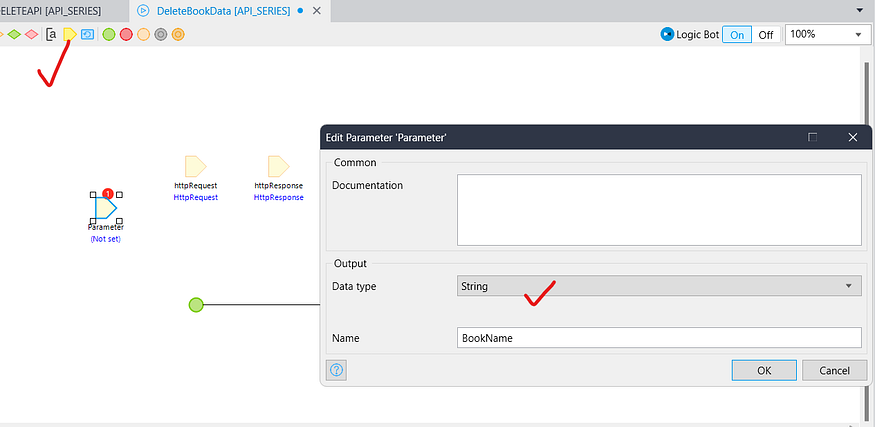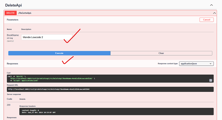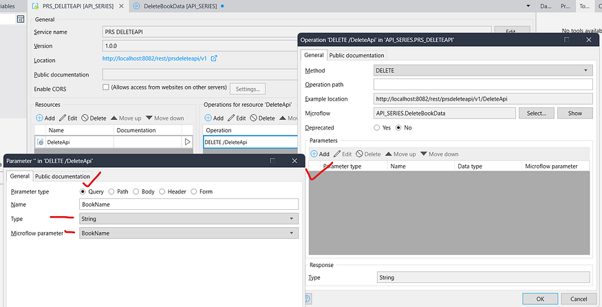 Lastly, Go to PRS_DELETEAPI -> Open your DELETE/DeleteApi -> add one Query parameter string type -> in the microflow parameter select BookName.