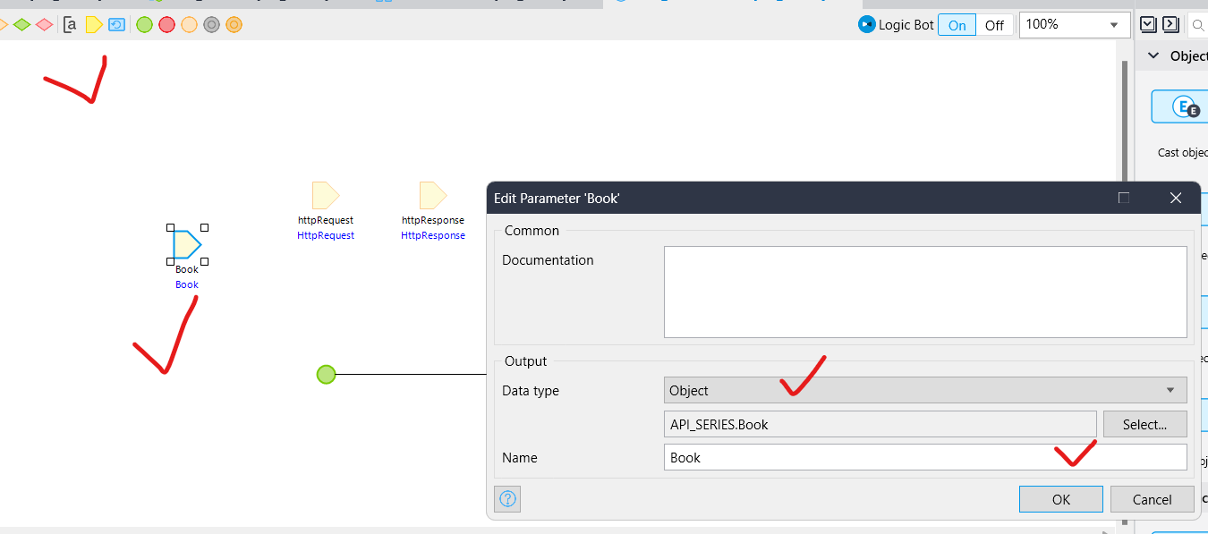 Open your CreateBookDataByBodyParameters microflow-> take a parameter of Book entity->in the Data type select Object.
